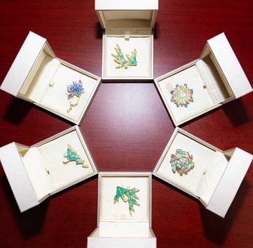 實操體驗環節,現場熱鬧非凡,指導老師分步示范螺鈿鑲嵌的制作步驟,從研磨貝殼,到封層固化,其中的每一個環節都至關重要。全員隨后迫不及待拿起材料和工具進行動手實踐,過程中互相交流鑲嵌技巧、分享創作靈感。隨著胸針雛形的慢慢顯現,原本單調的金屬底胎,經過大家精心的色彩搭配和螺片設計,逐漸變成了一個個獨具匠心的定制胸針。