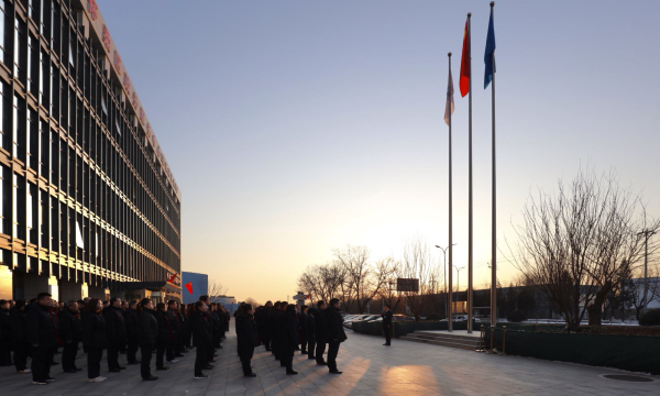 8點08分,迎著新一年的曙光儀式正式開始,在莊嚴的國歌聲中,升旗手高高揚起國旗,鮮艷的五星紅旗迎風招展,冉冉升起。天氣雖然寒冷,但也擋不住中航建設人的熱情,大家精神抖擻、莊嚴肅立,面向五星紅旗和司旗行注目禮。