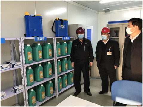 調研中,陳董事長走到工地項目部入口處,親自進行紅外測溫儀測量體溫,詳細填寫健康情況表后進入項目部內。他指出,項目部要從疫情防控細節入手,完善登記備案等各項制度,及時上報有關信息,加強員工防護,嚴格消毒消殺工作,努力營造安全放心的工作環境。
