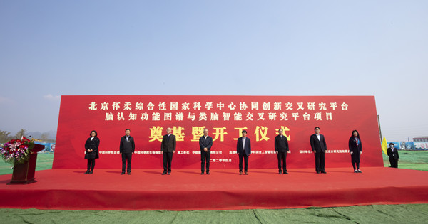 4月10日上午,北京懷柔綜合性國家科學中心協同創新交叉研究平臺——腦認知功能圖譜與類腦智能交叉研究平臺項目舉行奠基暨開工儀式。懷柔區委書記、科學城黨工委書記戴彬彬,懷柔科學城黨工委委員、管委會副主任伍建民,中國科學院自動化研究所所長徐波,中國科學院生物物理研究所所長許瑞明,項目監理方、設計方領導,集團公司黨委書記、董事長陳先瑞,副總經理、總工程師陳勁共同出席。