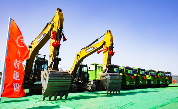 北京市長城偉業投資開發總公司黨委書記、董事長單景民宣布開工后,禮花綻放、挖掘機開挖土方,各位領導為項目奠基培土。在隆隆鳴笛聲中,雁棲國際社區A-01#住宅等14項工程項目正式開工。