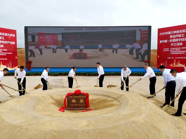 9月28日上午,中國—東盟數(shù)字經(jīng)濟產(chǎn)業(yè)園開工活動在廣西壯族自治區(qū)南寧市舉行,廣西壯族自治區(qū)黨委常委、常務(wù)副主席秦如培出席儀式并宣布項目開工。自治區(qū)副主席劉宏武,自治區(qū)政府副秘書長黃勝杰,自治區(qū)發(fā)改委副主任潘巍,南寧市政府副市長朱會東,廣投集團黨委書記、董事長周煉,自治區(qū)大數(shù)據(jù)發(fā)展局副局長吳志偉,數(shù)字廣西集團執(zhí)行總裁、廣西數(shù)字經(jīng)濟生態(tài)產(chǎn)業(yè)公司董事長靳芳,集團公司黨委書記、董事長陳先瑞共同出席活動并為項目奠基培土。